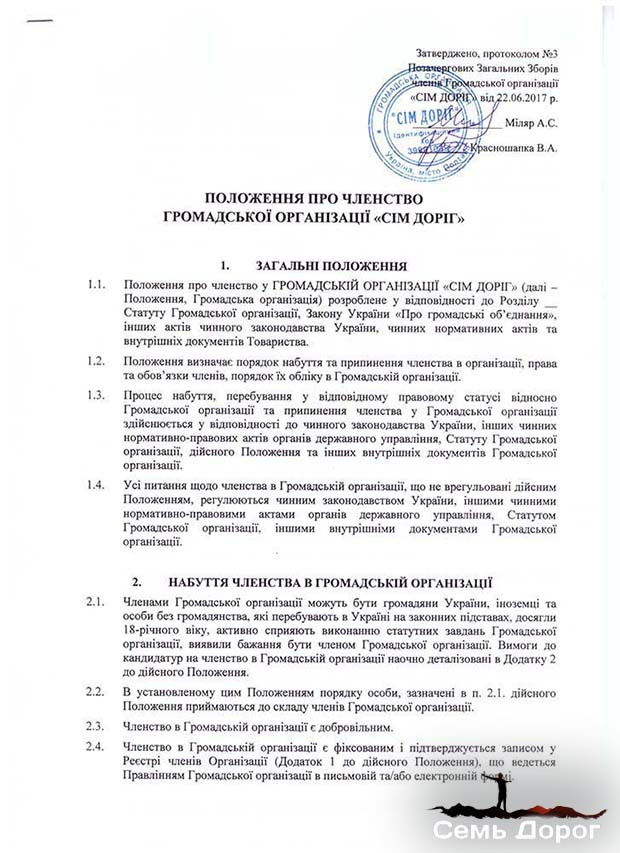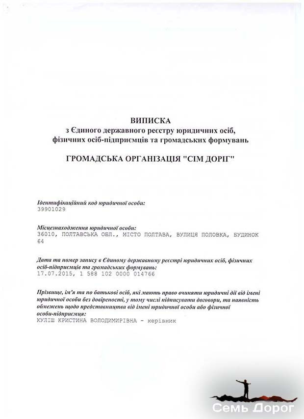 Документи реабілітаційного центру Сім доріг